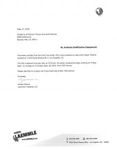 Officially considered for 91st OSCAR® Nomination in a Live Action Short Category 2019